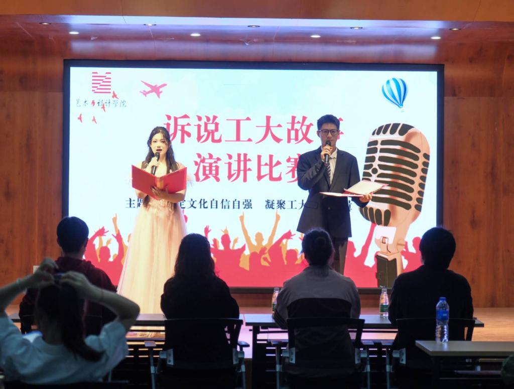 于艺设楼401“举办诉说工大故事”演讲比赛。2023级辅导员王倩倩及各部门部长出席活动并担任评委,100余名同学代表参观比赛,共同倾听工大故事。