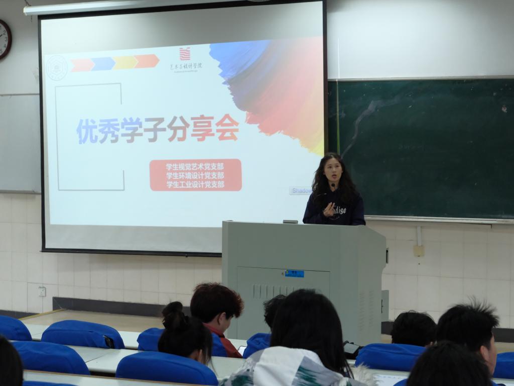。环境设计202班学生陈心怡结合自身保研经历,详细解读了保研流程与保研要点,并和在场同学就如何参加学科竞赛展开交流;工业设计201班学生童检重点向学弟学妹们介绍如何做好大学四年规划,鼓励大家相信自己;环境设计202班学生吴润泽主要分享如何打造个人亮点,实现成长突破;数字媒体艺术201班学生刘文元以“看、学、听、说、做”为主线,与在座同学分享保研经验。