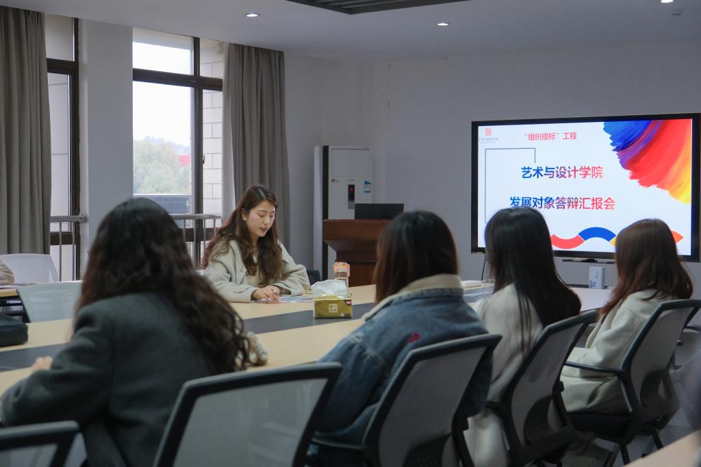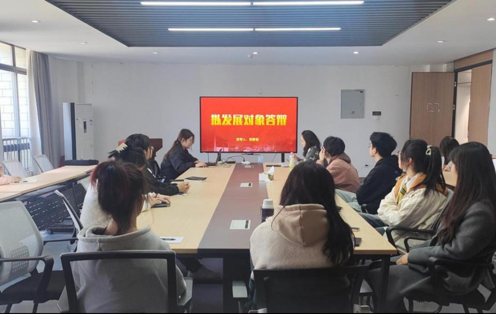 学生党支部于艺设楼506举办发展对象答辩会。本次答辩由个人陈述和现场提问两个环节组成。在个人陈述环节中,各位入党积极分子全面客观地从入党动机、学习成绩、工作质量、志愿服务、个人优缺点等方面的表现进行逐一汇报,向老师和同学们全面展示了自己的综合素质。支部书记认真倾听、仔细记录,充分了解入党积极分子的思想状态和个人综合素养,以确保发展对象达到发展标准。