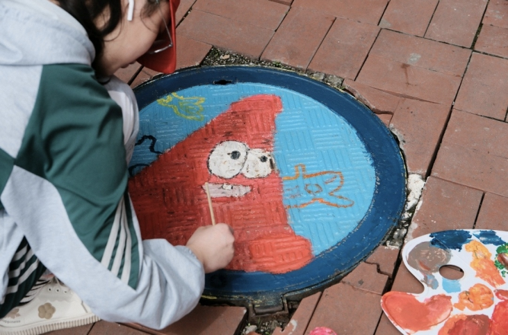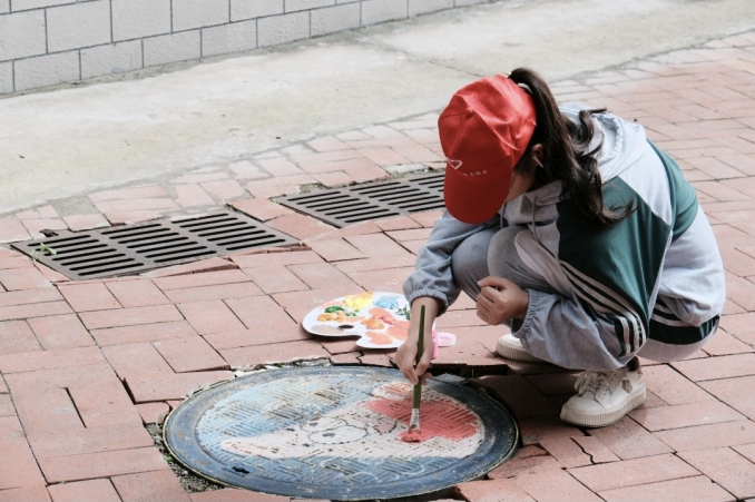 青年志愿者协会组织开展校园井盖美化志愿活动,吸引了众多同学参与其中,他们利用业余时间创作,用画笔为校园井盖添置“新衣”,充分发挥了专业特长,让原本普通的井盖焕然一新、妙趣横生,绘画过程不断吸引着来往师生的目光。