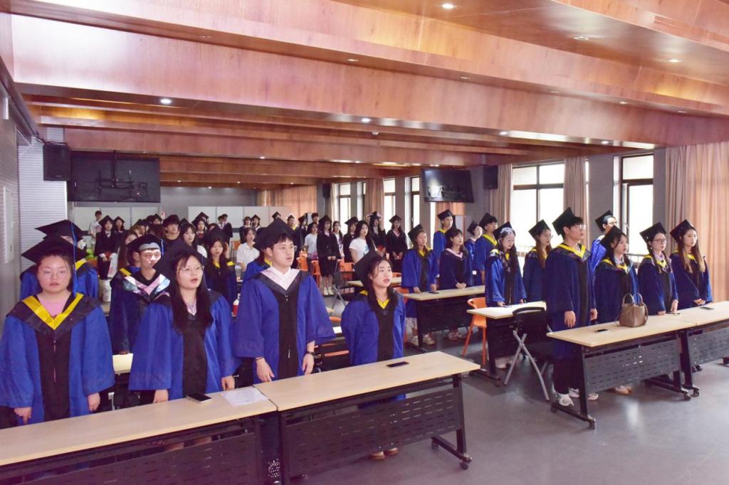 毕业生学位授予仪式在澎湃的国歌声中开始。副院长佘醒宣读学士学位授予决定,副院长宋益民宣读硕士学位授予决定。