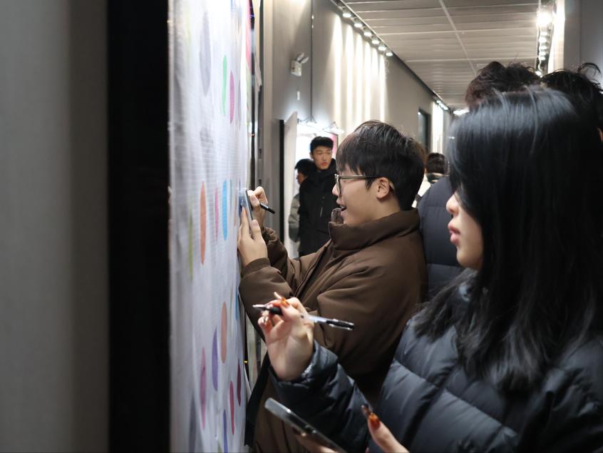 紧接着,“绘笑”环节为活动现场注入了满满的活力与欢乐。面对空白的幕布,同学们的想象力在画布上肆意驰骋。画笔在他们手中仿佛被赋予了生命,勾勒出一个个形态各异、充满创意的笑脸。有的同学钟情于经典的卡通形象,将哆啦A梦那憨态可掬的笑容、路飞自信满满的大笑栩栩如生地呈现在幕布上,角色中所蕴含的乐观精神,感染着在场的每一个人;有的同学则充分发挥自己的艺术才华,运用夸张的线条和绚丽的色彩,创作出抽象而富有感染力的笑脸图案,那些大胆的笔触和鲜明的色调,展现出同学们内心深处对美好生活的炽热向往;还有的同学以自己身边的朋友或家人为原型,画出他们最真挚、最温暖的笑容,让身边的同学感受到了那份浓浓的情谊与温暖。