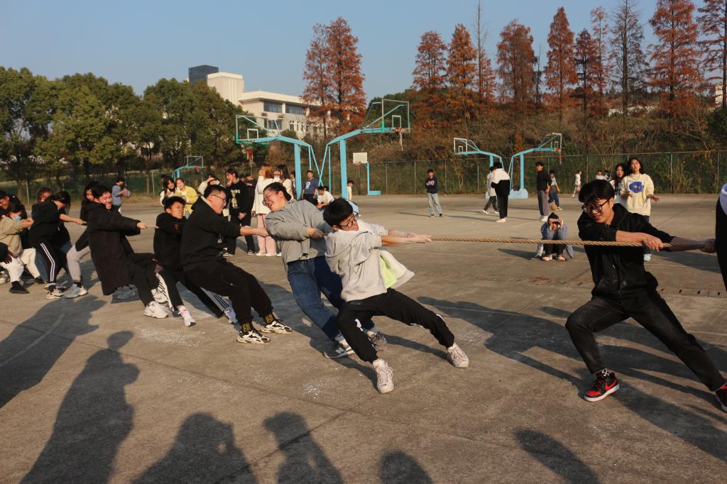 于东教篮球场举办新生拔河比赛。本次比赛由院团委学生会体育部主办,2021级全体学生参加。