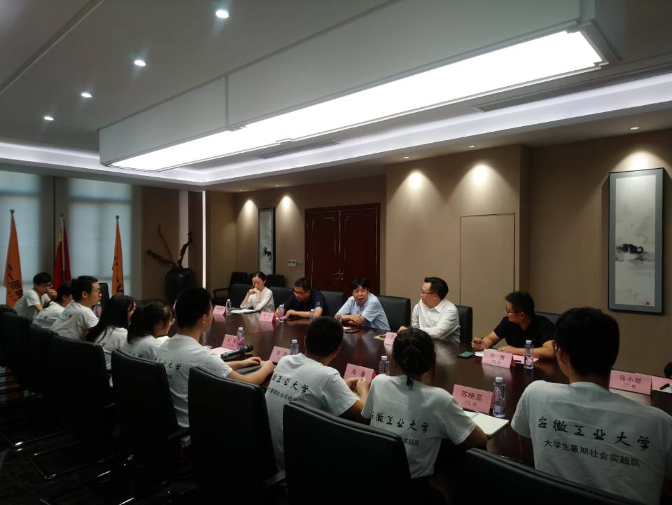 座谈会上,王永昌首先代表企一集团对赵保平一行到来表示热烈欢迎,并就企一集团现状、发展历程、发展方向以及校企合作成果等进行了介绍。在听取两名校友代表工作情况汇报以及实践队队员交流汇报后,赵保平作指导讲话。赵保平首先向企一集团为学生提供专业的实践平台、对学生在实践期间的关心以及对毕业生校友的认可和关照表示感谢,随后指出大学生参加社会实践活动,对于了解社会、认识国情,增长才干、奉献社会,锻炼毅力、培养品格均具有极其重要的意义,要充分珍惜这次实践机会,不断在实践过程中提升自身的综合素质。同时教导学生在实践期间要注意理论知识的转化和拓展,增强运用知识解决实际问题的能力。最后还希望各实践队队员在实践单位要注意遵守纪律,提高安全意识,过一个充实、安全、文明的暑期实践生活。