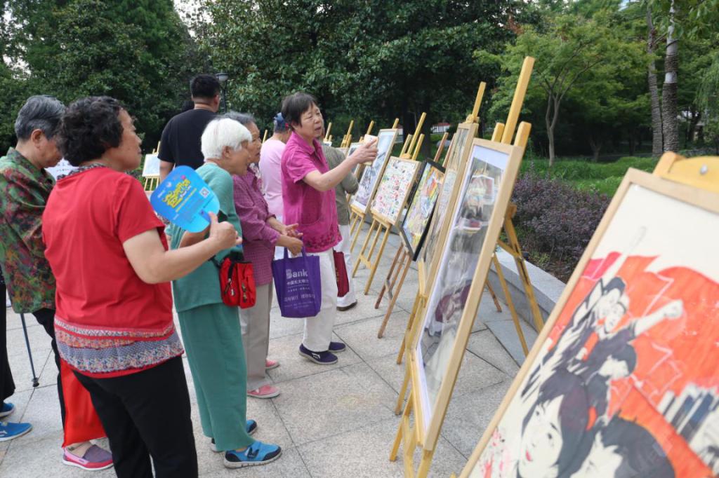 南湖公园的“画辉煌历程,建时代新功”系列画展吸引了众多市民驻足欣赏