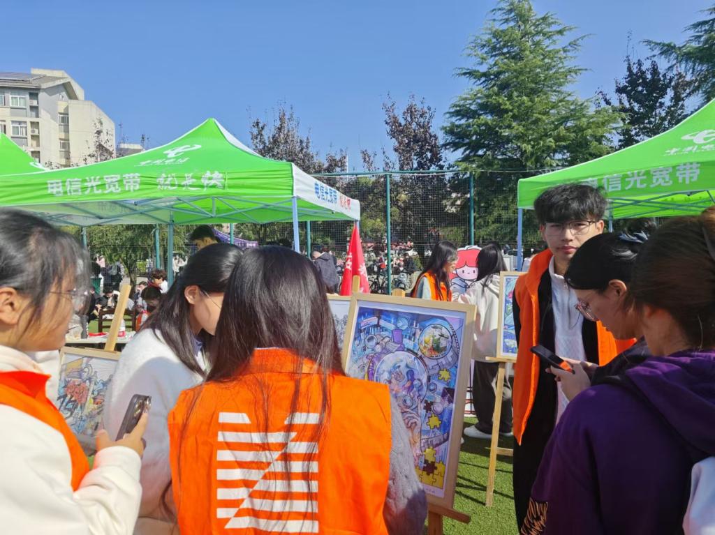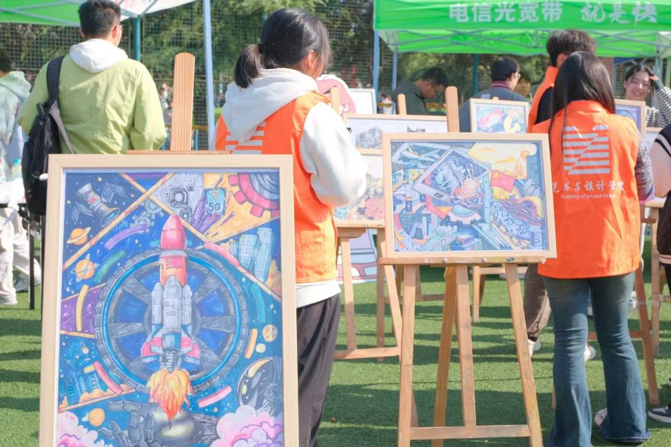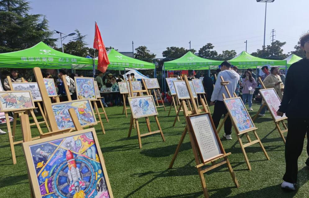 10月23日一场精彩纷呈的国庆主题画展伴随着2024年秋季运动会在安工大秀山校区田径场拉开序幕,为这个金秋时节增添了一抹绚丽的色彩。