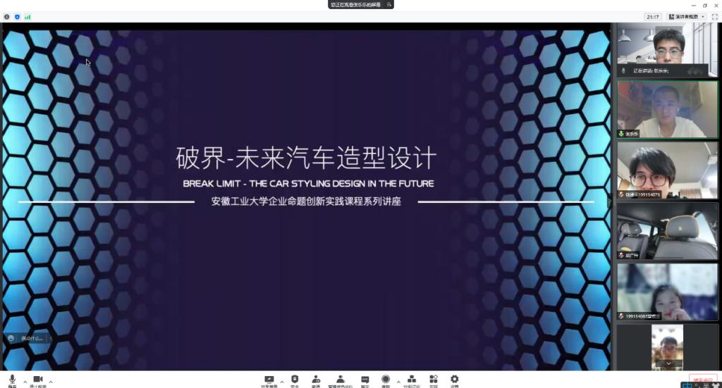张乐乐主任在《破界-未来汽车造型设计》讲座中,结合自己多年汽车设计从业经历为同学解析了汽车设计融入技术、场景与体验的未来趋势,并着重分析了个人设计的安徽省工业设计大赛汽车类金奖作品《MKV-Smart Mobility System》,详细讲解了他是如何发现需求、萌生想法、提出方案直到输出解决方案的全过程,也希望同学们能够设计中大胆创新、勇于跨界,基于未来出行方式与驾乘习惯设计出更有突破性的汽车。