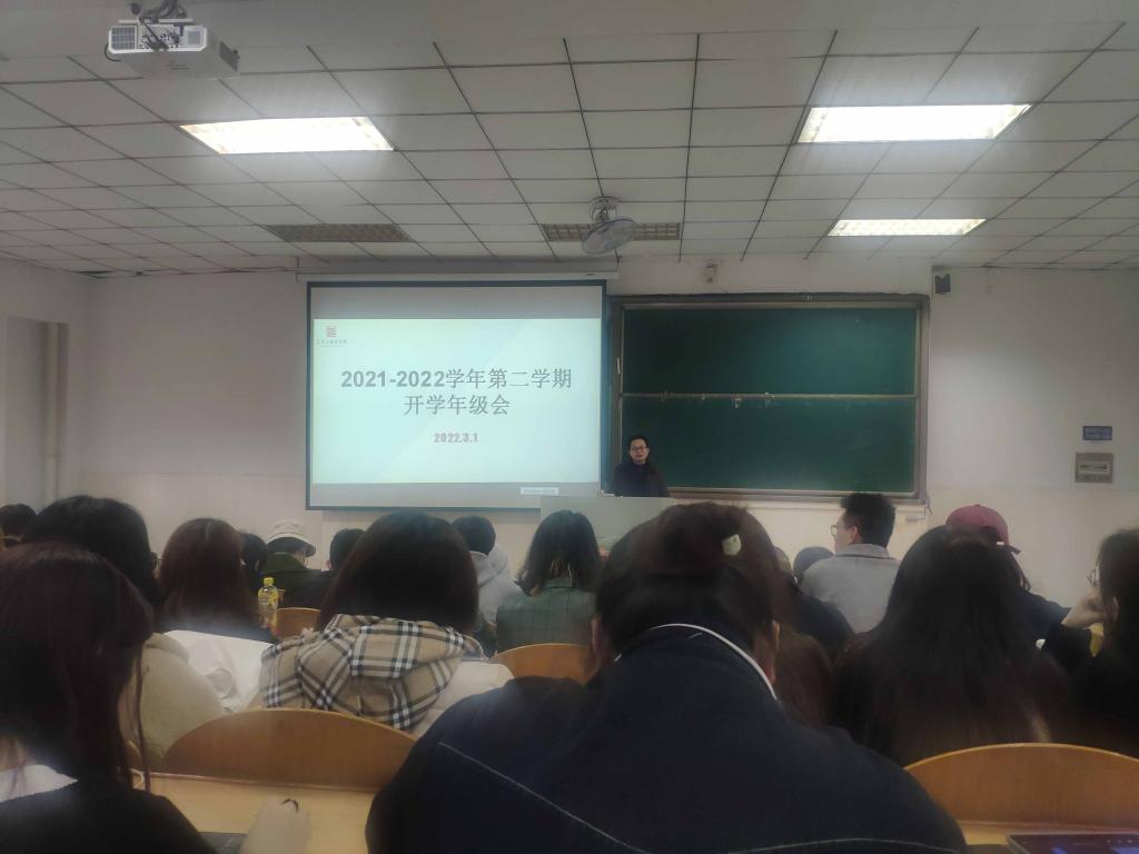 针对2021级,年级辅导员赵颖首先简要阐明工作调整,向同学们介绍2021级新辅导员罗凡,并对全体同学表达殷切期望,希望同学们珍惜四年时光。接着,年级辅导员罗凡从安全角度再次强调在校学生必须严格履行请销假制度;讲述近期校园诈骗案例,提醒同学们提高防范意识;从学业角度分析各班级成绩及年级整体学习情况,表扬优秀同学,提醒挂科同学认真复习,在新的一学期开启新的学习状态;从未来规划角度鼓励同学们坚持积累,把握学习、提升能力的机会,厚积薄发,为未来做好铺垫。