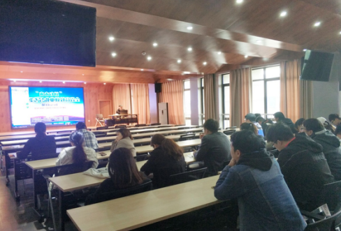 在教创楼401教室组织2019届毕业生集体观看《就有未来—全省高校同上一堂就业指导课》网络直播。