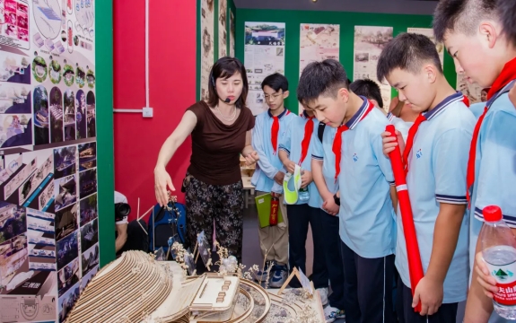 展览中,中外学生就作品展中的中国传统文化和地方物产设计理念进行了热烈的交流,通过领队老师介绍,学生们感悟到了电子游戏机