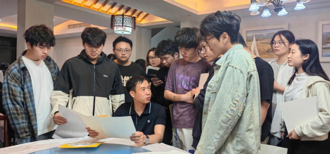 应邀与视频拍摄组合作,师生来到休宁璜尖乡,位于璜尖乡的咖啡屋由毛元仁老师负责室内和外立面设计,目前经营情况良好,胡迪博士介绍在乡村规划发展中大学生起到积极作用,可以锻炼大学生的实际才干。在村部参观奋斗历程馆,革命战争的烽火岁月,这里曾经是革命根据地,接受革命红色文化教育,传承红色基因,激发师生爱国拥军热情。