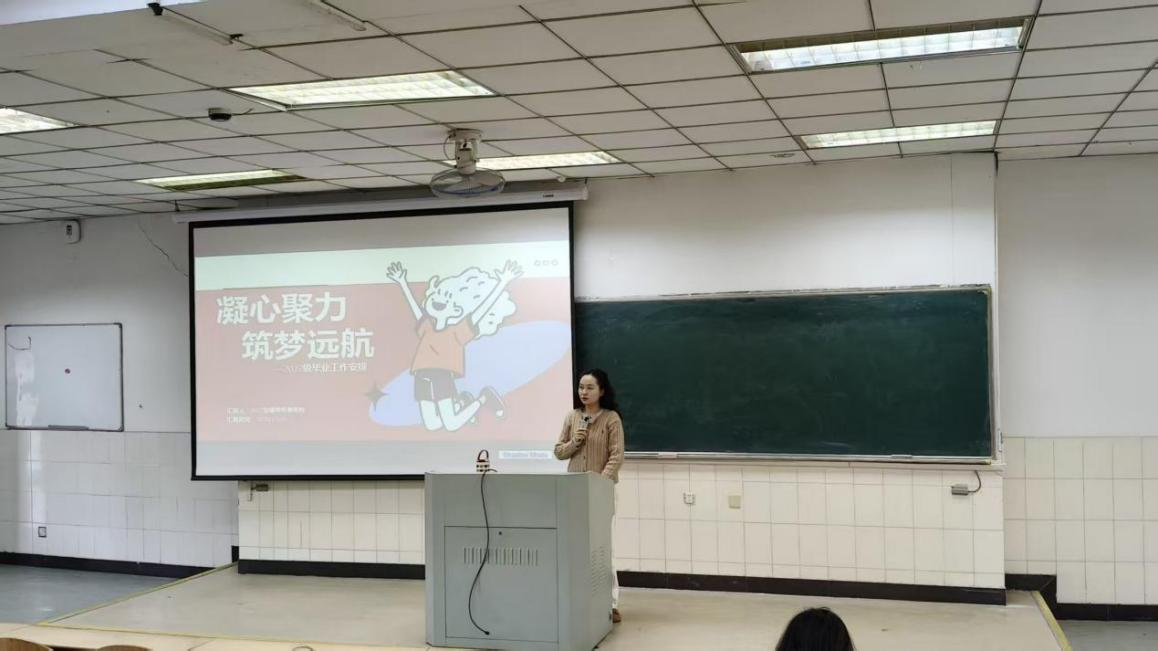 毕业班辅导员秦艳秋开展“从军报国:青春荣耀”征兵政策宣讲。她阐述了大学生入伍的重要意义与光荣使命,详细解读国家相关优待政策、入伍条件、报名流程及发展前景,为有意投身军旅的学生提供清晰指导。她还围绕体质健康测试、考研慰问、就业信息登记及第二课堂学分落实等具体事项作了安排