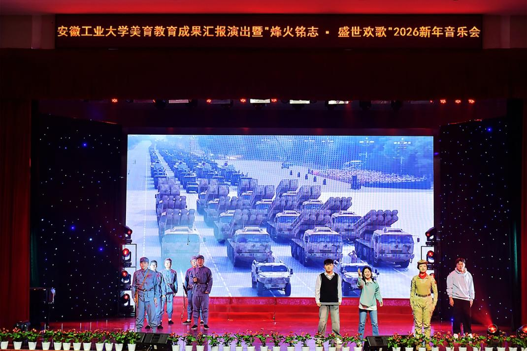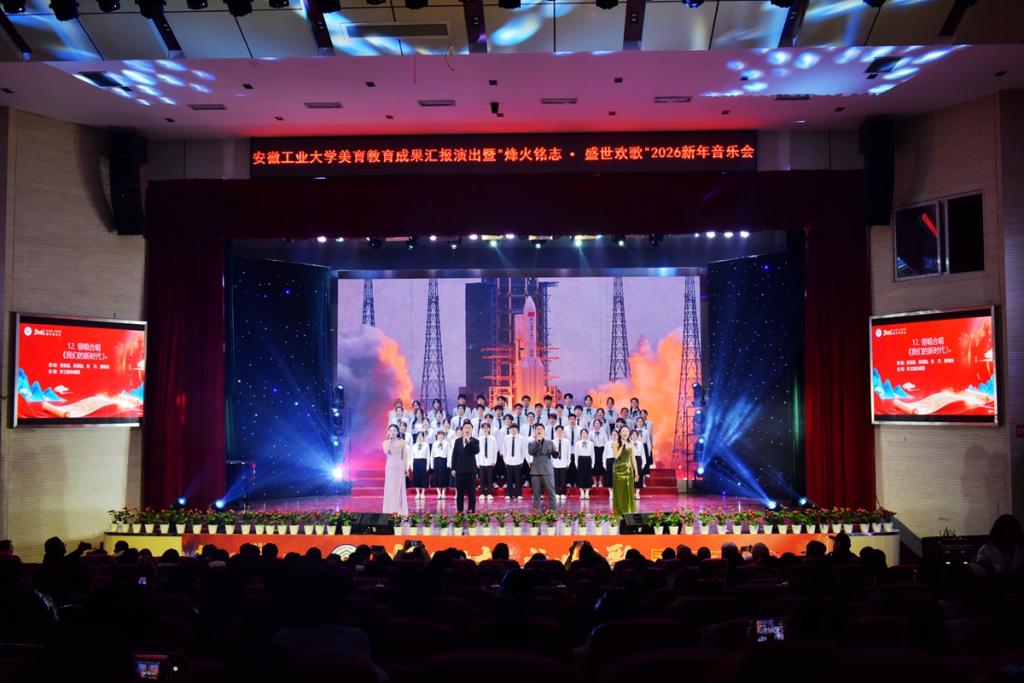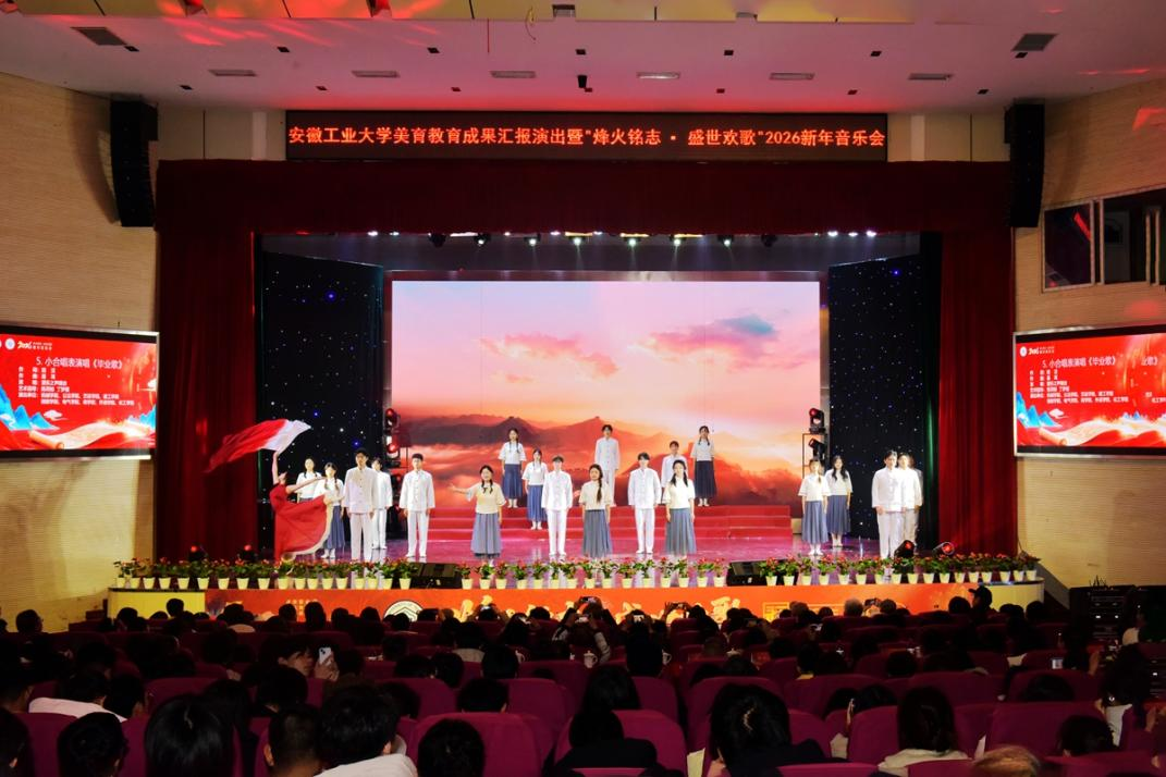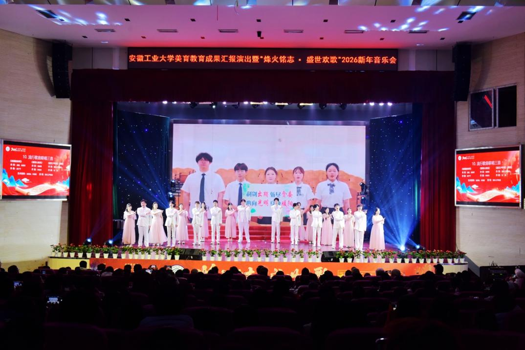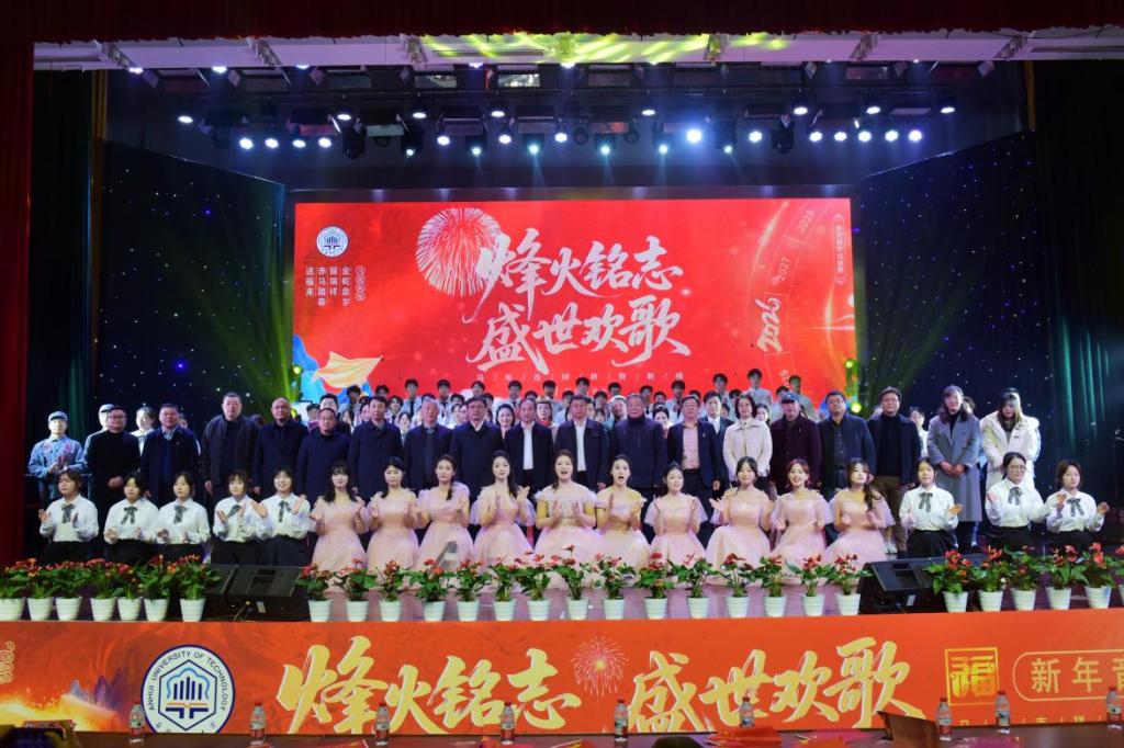 美育教育成果汇报演出暨“烽火铭志·盛世欢歌”2026新年音乐会在秀山校区新大学生活动中心浓情上演。校领导曾杰、王俊、郑啸、吴春雷、闵凡飞、郑利平、张世宏出席,校党委常委,相关职能部门、电子游戏机官网