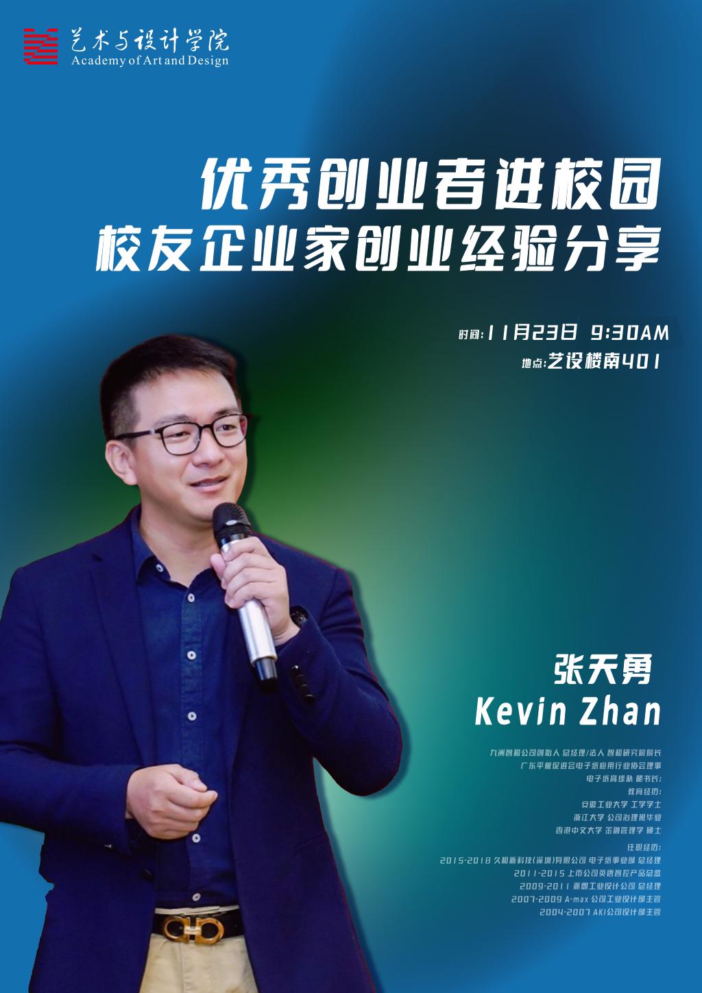 报告题目:优秀创业者进校园——校友企业家创业经验分享报告人:张天勇报告时间:2022年11月23日9:30报告地点:艺设楼401报告对象:电子游戏机 本科生、研究生报告人简介:张天勇,毕业于安徽工业大学工业设计专业,九洲智和公司创始人、总经理、法人,智和研究院院长 ,广东平板促进会电子纸应用行业协会理事,电子纸高球队秘书长。