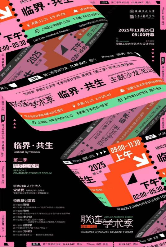 成功举办 “临界・共生” 第二季研究生论坛。本次论坛聚焦技术、社会、环境多重变革交织的当下,“临界”既暗藏挑战,亦孕育新机;“共生”则指明艺术与设计的发展方向 —— 寻求人、技术、自然与社会的和谐共生。活动以该主题为核心,鼓励探索边缘与交汇地带的创新可能,在新质生产力为艺术设计提供创新驱动力与技术支撑的背景下,搭建起思想交流、智慧碰撞的学术平台。