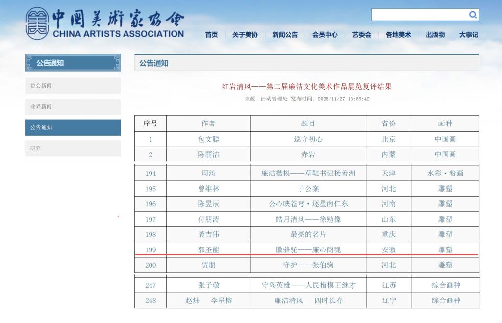 11月27日,由中国美术家协会、重庆市纪委监委、重庆市文学艺术界联合会、重庆高新区党工委及四川美术电子游戏机 联合主办的“红岩清风——第二届廉洁文化美术作品展览”复评结果揭晓,我教师郭圣能的雕塑作品《徽骆驼——廉心商魂》成功入选为学党建与艺术创作融合再添佳绩