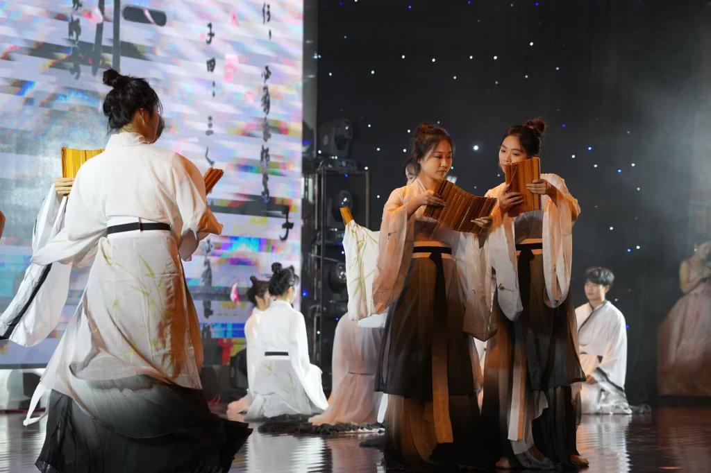 《逍遥·书简》取材自经典舞台剧《孔子》,以书简为形,刻录汉字筋骨;以逍遥为魂,演绎华夏风骨。作品通过刚柔并济的舞姿,将汉民族对传统文化的守护与原始舞蹈的遗存巧妙融合——既有书简开合间的人为造设之美,又蕴藏山水泼墨般的自然灵动,以当代肢体语言诠释了中华文明的深邃与自由。舞蹈尾声以简牍化羽的意象收束,传递出文脉不息,精神逍遥的哲思,赢得评委的高度评价。