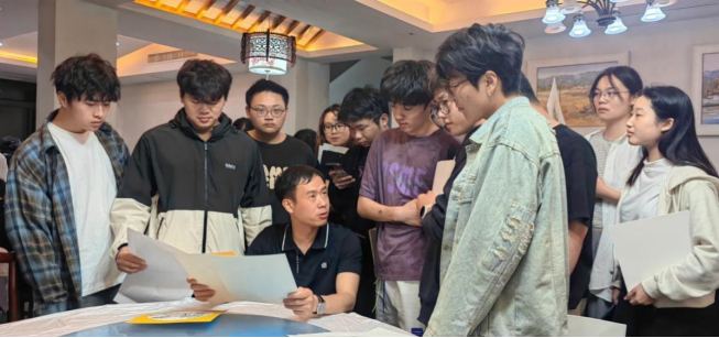 4月12日,师生们来到休宁璜尖乡,参观位于璜尖乡乡村咖啡屋设计现场,毛元仁老师介绍了该项目的室内和外立面设计,胡迪老师介绍了乡村规划发展中大学生起到积极作用。老师们鼓励同学在乡村实践中学习,用自己的专业知识服务于社会。