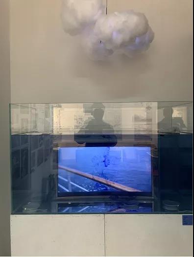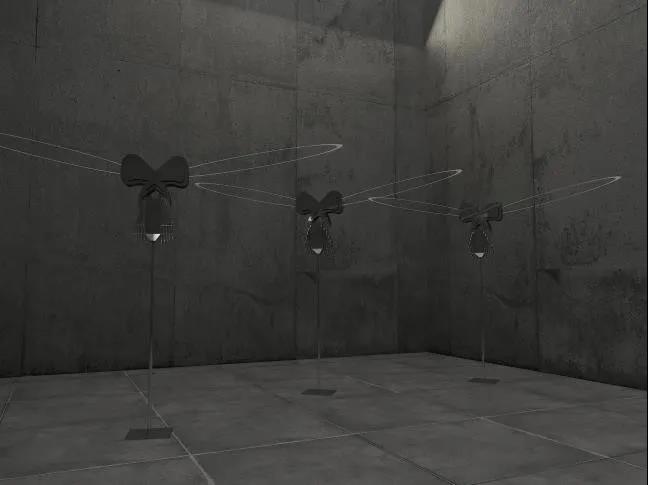设计说明:“死”海为大家制造了一次面对深蓝的机会,带领大家在静谧空间里感知海洋的痛楚。作品结合多媒体互动装置,运用光、影像、音频等其他载体的形式综合呈现,以此传递给观众作品的主题及寓意,并通过作品让公众反思目前海洋生态。作品的呈现通过三个层面,一是佩戴特制的眼镜来观看显示器的视频内容,二是通过装置的互动性,使观众的观感和情绪将随着数字画面和声音的不断推移而变化。三,展览同时会通过拍摄记录装置内部海水每天被破坏和污染变化过程。