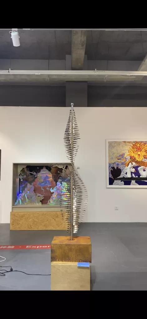 设计说明:伴随时代的发展,我们随父辈离开了故乡,辗转到城市生活。孩提时摸虾捕蝶捉蜻蜓的那群人那地方最终只成为了回忆和远方。骄傲孤寂的现代人,在冰冷的钢筋混凝土房,刺眼的玻璃幕墙里找不清方向。将密布城市的不锈钢,用艺术的手法创作一个抽象的蜻蜓形象。主体躯干采用镜面不锈钢,来反射各个方向。顶端两侧用绳子打造翅膀。随着机械装置的运作,让人能驻足观赏,回忆曾经自己的模样。