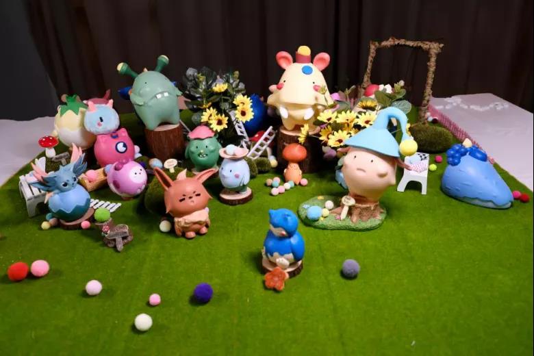 设计说明:《奇幻的城市——怪物奇谈》以奇幻的城市为主题的装置主要通过对奇幻森林、怪诞风造型、鲜明色彩等一系列元素的提取。通过天马行空的想象,创造出各种造型,运用大胆的配色来展现一个神秘奇幻的世界,编织属于自己的奇幻世界,我的作品极具童趣性和梦幻性,颜色以奇幻、神秘为主题,运用各种造型独特的小怪兽构造一个有趣的世界,展现我内心的童真和纯洁,希望能够让大家回忆起自己纯粹美好的童年。