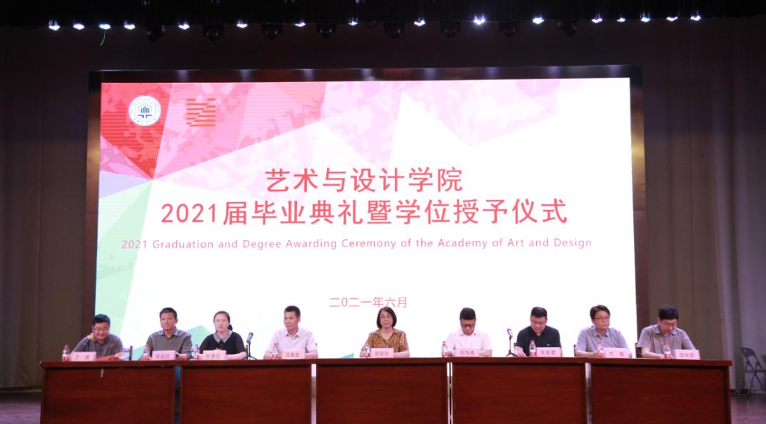 全体党政领导与全体师生向学业有成、即将踏上人生新征途的毕业生们表示热烈的祝贺,向多年来辛勤培育学生成长成才的全体教职工表示深深的敬意与衷心的感谢。同时指出,今年是中国共产党成立100周年,走出校门,同学们将肩负着时代赋予的重要使命。以师长的名义,他向同学们提出了三点希望:一是要坚守信念,始终秉持对艺术的热情。无论将来从事平面、环境,还是设计、美学,都希望同学们能始终坚守对美的追求、对生活的热爱、对万物的新鲜感,不断攀登设计创作的高峰。二是要明德修身,始终胸怀对家国的情怀。希望同学们能用心感悟时代变迁,将个人艺术理想融入构建中国梦的伟大实践中,创作出更多有道德、有筋骨、有温度的艺术作品。三是要积极进取,始终保持对卓越的追求。不断接受新的思维与挑战,不断实现新的超越和创造,在新时代的机遇里,有坚持,有担当,有作为,有收获。